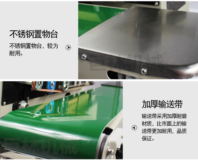 该系列封口机采用电子恒温控制和无级调速传动系统,具有自动连续封口、印刷产品标签、一次完成之功能,并可卧、立落地使用。用于单层薄膜及各种复合薄膜的封口、制袋,广泛应用在食品、制药、种子、化工、轻工等部门。